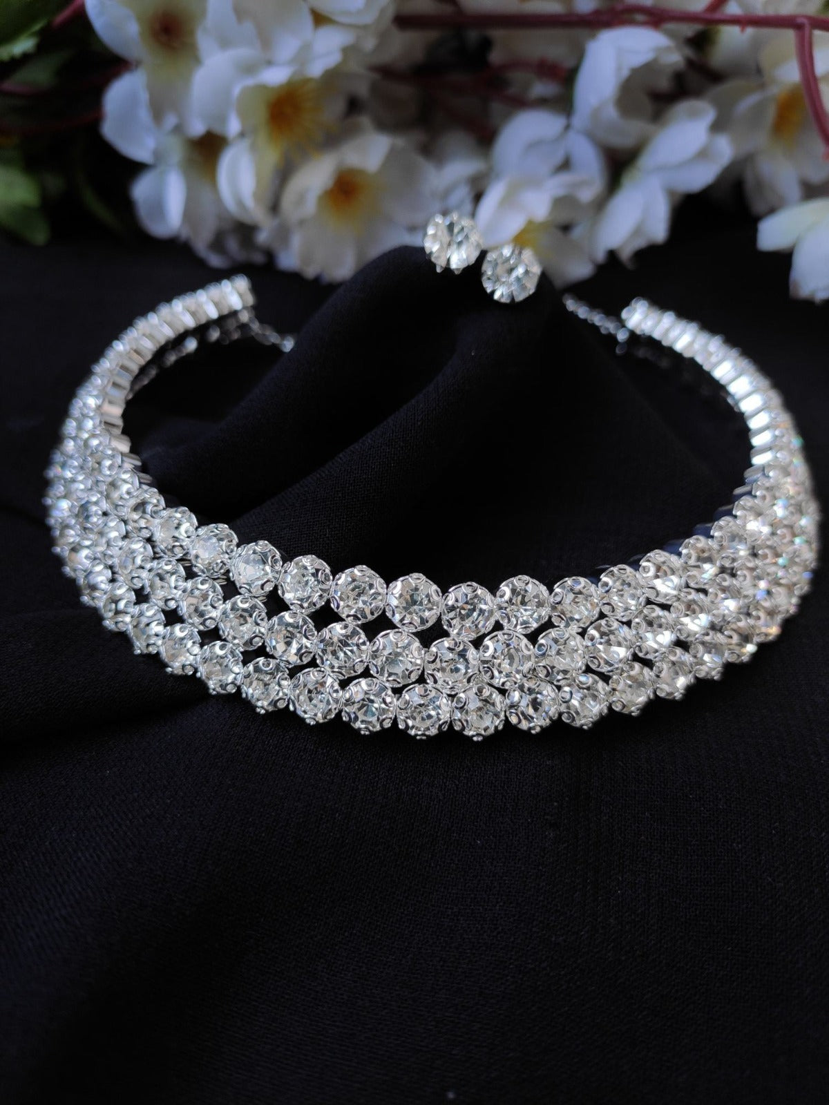 Product details of 2 Layer Silver Stone Choker Set/Beautiful Necklace Set Jewelry For Girl and Women